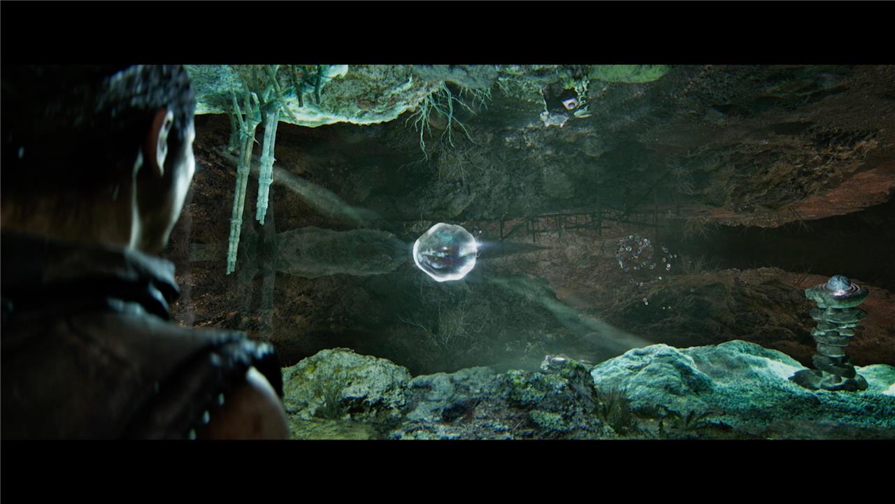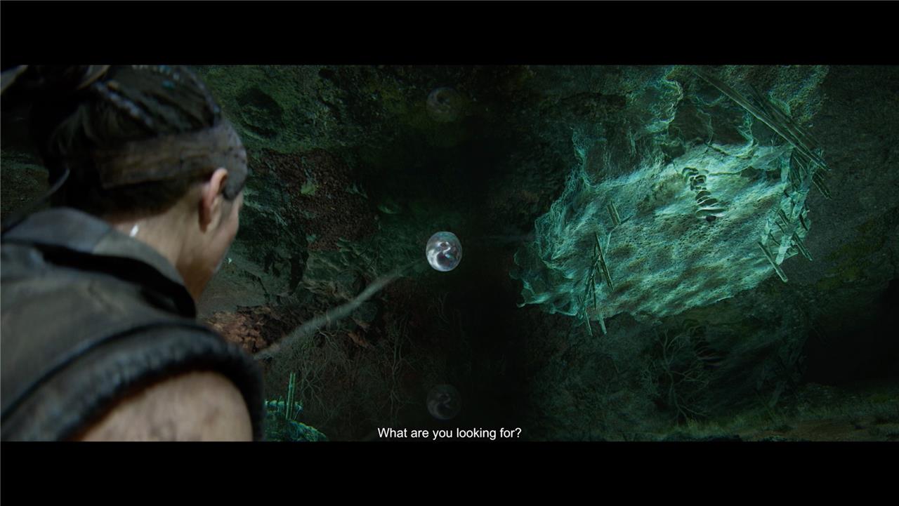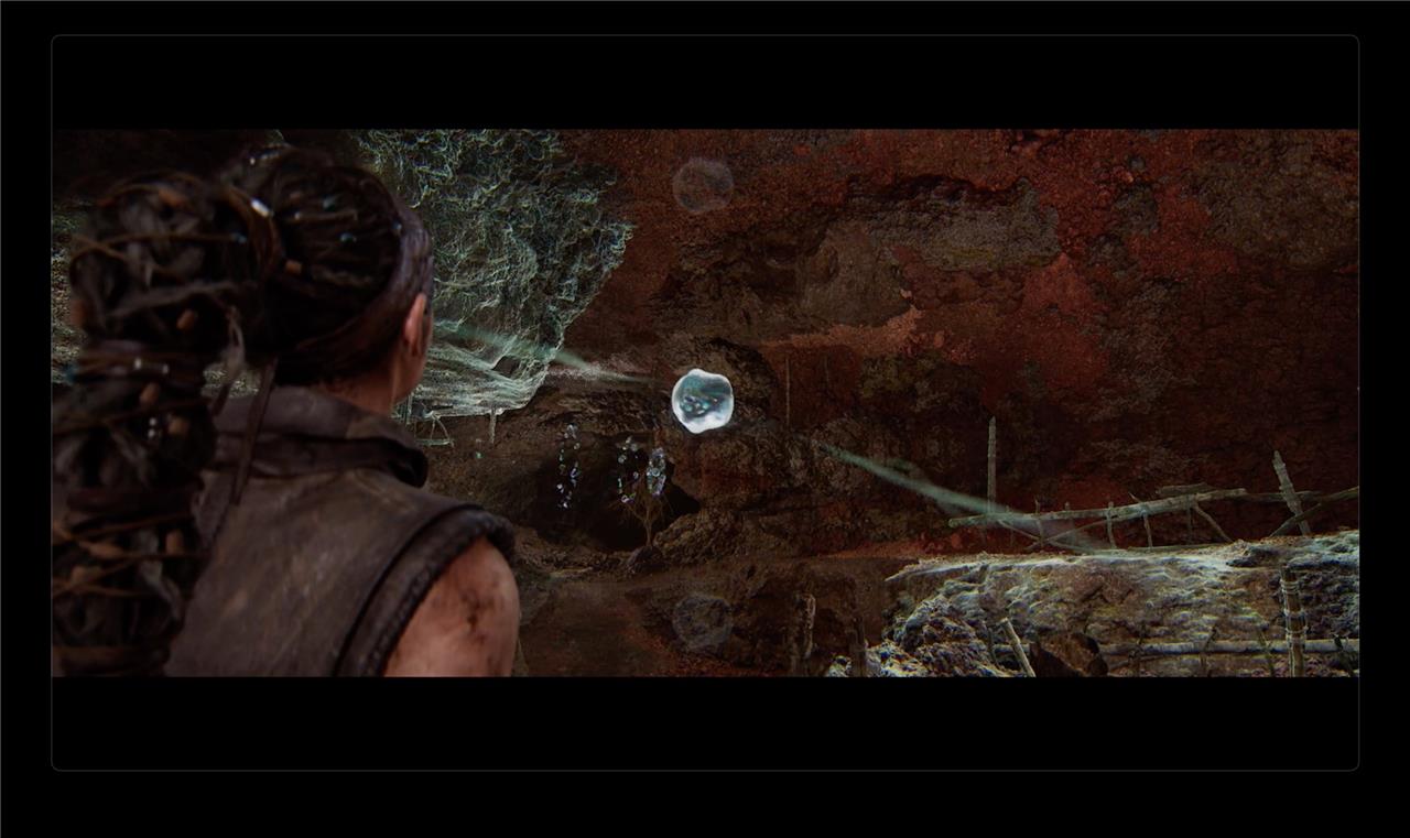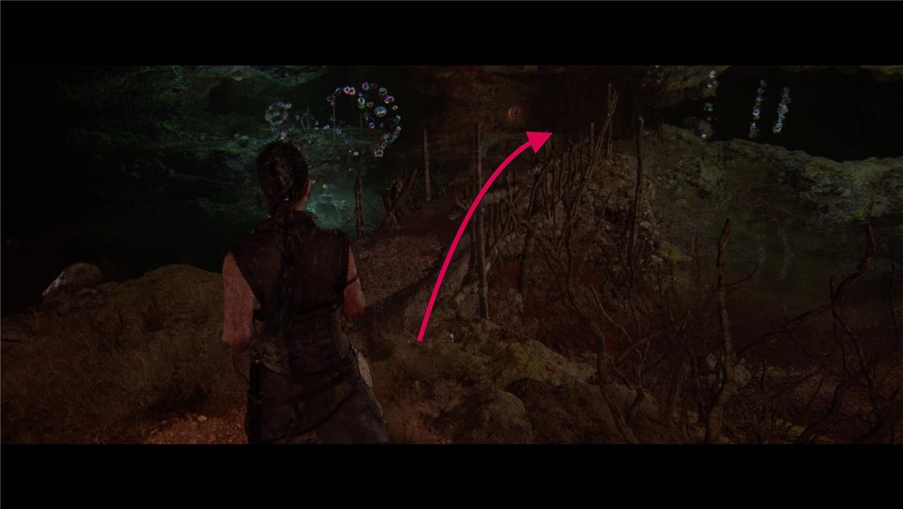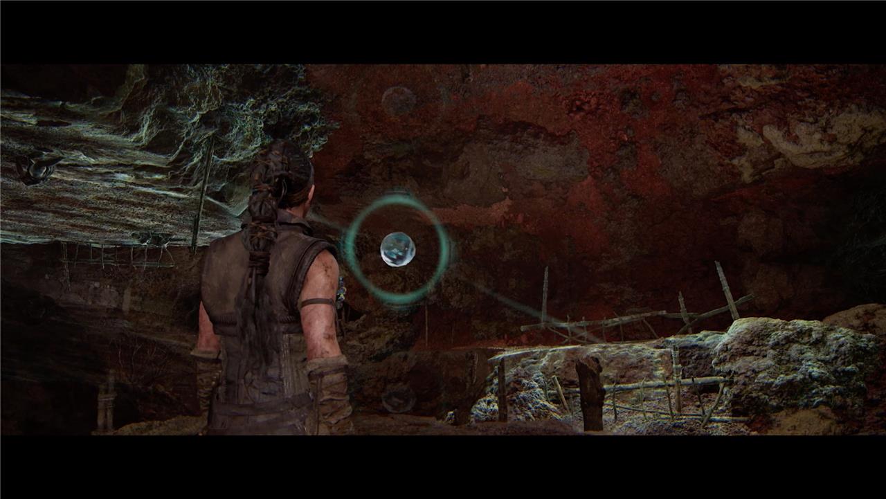 The solution to the Hiddenfolk puzzle #2 in Hellblade 2 involves collecting three stone orbs scattered around a clearing. First, after entering the area, head to the right side of the pedestal and climb a small hill to retrieve the first orb, which changes the environment once picked up. Then, interact with floating bubbles to open a ledge on the right, climb up to find the second orb, and use the bubbles again to swap the environment so the orb reappears. Finally, focus on the bubbles to bring down a bridge, cross it, and interact with more bubbles to lower the third orb from the ceiling. After collecting all three orbs, place them on the pedestal in sequence to complete the puzzle and proceed.
