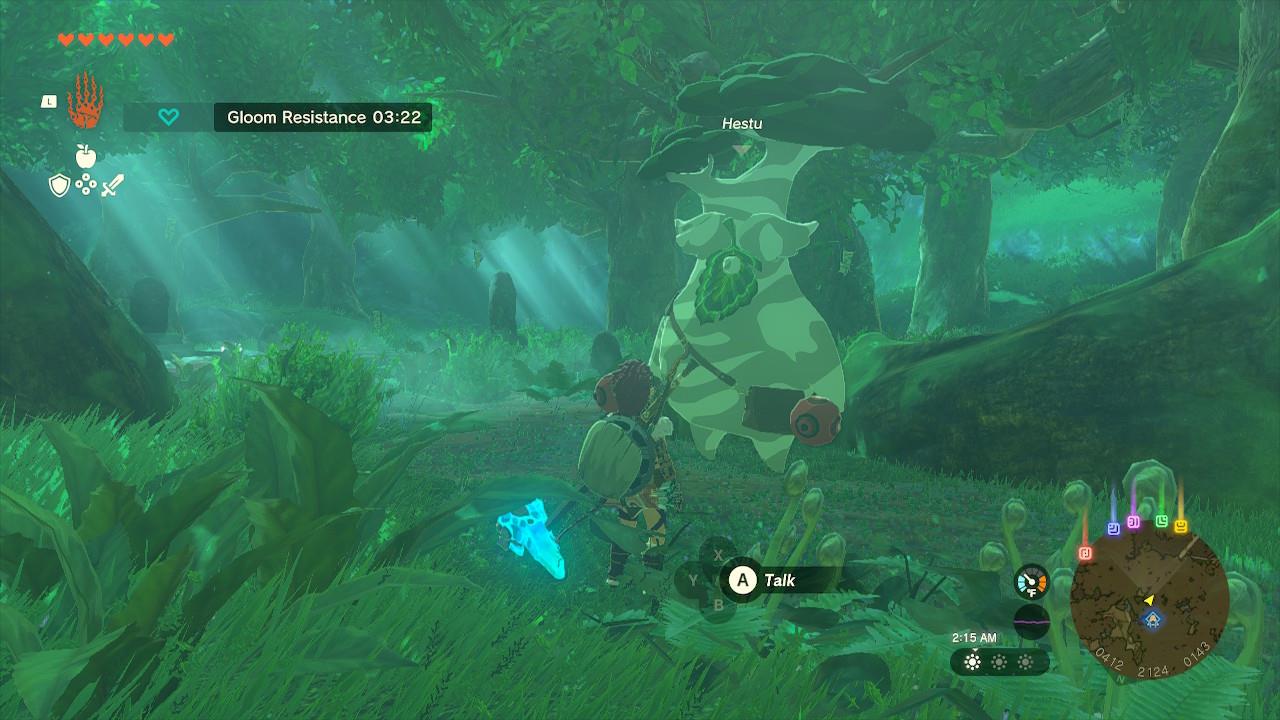 Find Hestu at his first spot northwest of Lookout Landing on Hyrule Ridge (coordinates around -1700, 1070, 0200), before completing your first major dungeon. Speak to him to trigger the quest-he’ll mention being scared of nearby “trees,” which are actually Evermeans enemies. If you progress too far (like finishing a temple), he’ll move to Lookout Landing, skipping the combat part but still completing via seed trade.