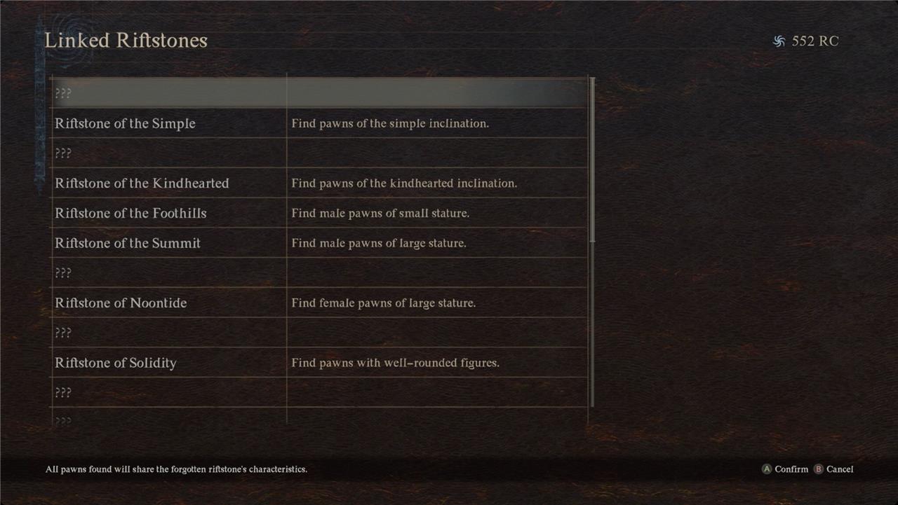 In Vernworth, the Grand Riftstone has an option in its menu to “view linked riftstones.” This displays all the forgotten riftstones you’ve found and lets you filter the pawns.