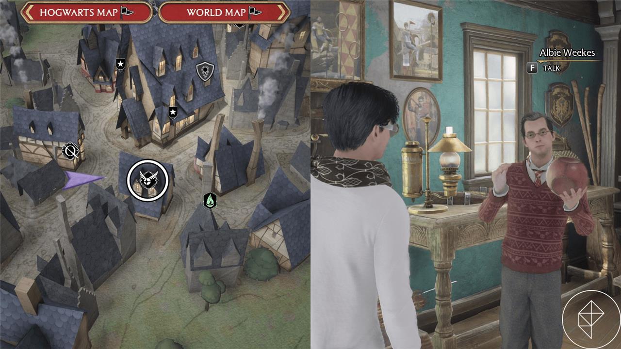 You can purchase your first broom from Sprintwiches Sport in Hogsmeade after completing the “Flight Test” quest with Madam Kogawa. The shopkeeper, Albie Weekes, offers several broom models at different prices, each with unique designs but the same base speed. Later in the game, you can return to purchase upgrades from him that improve broom performance, such as faster acceleration and smoother handling during flight.