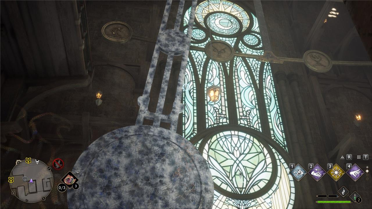 To solve the Clock Tower pendulum puzzle in Hogwarts Legacy, you need to use a freezing/slowing spell on the swinging pendulum when it lines up with specific symbols that match the locked doors’ grates.