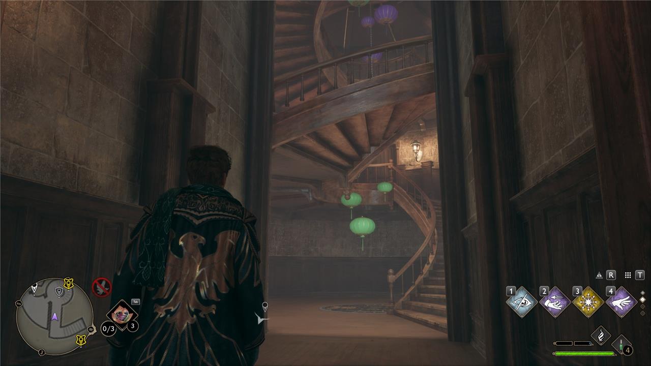 On the other side of the gallery, opposite from the Floo Flame, is a large, circular door. Interact with it, and you’ll enter a short hallway with a spiral staircase at the center.