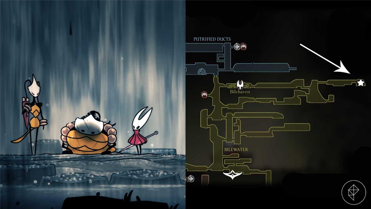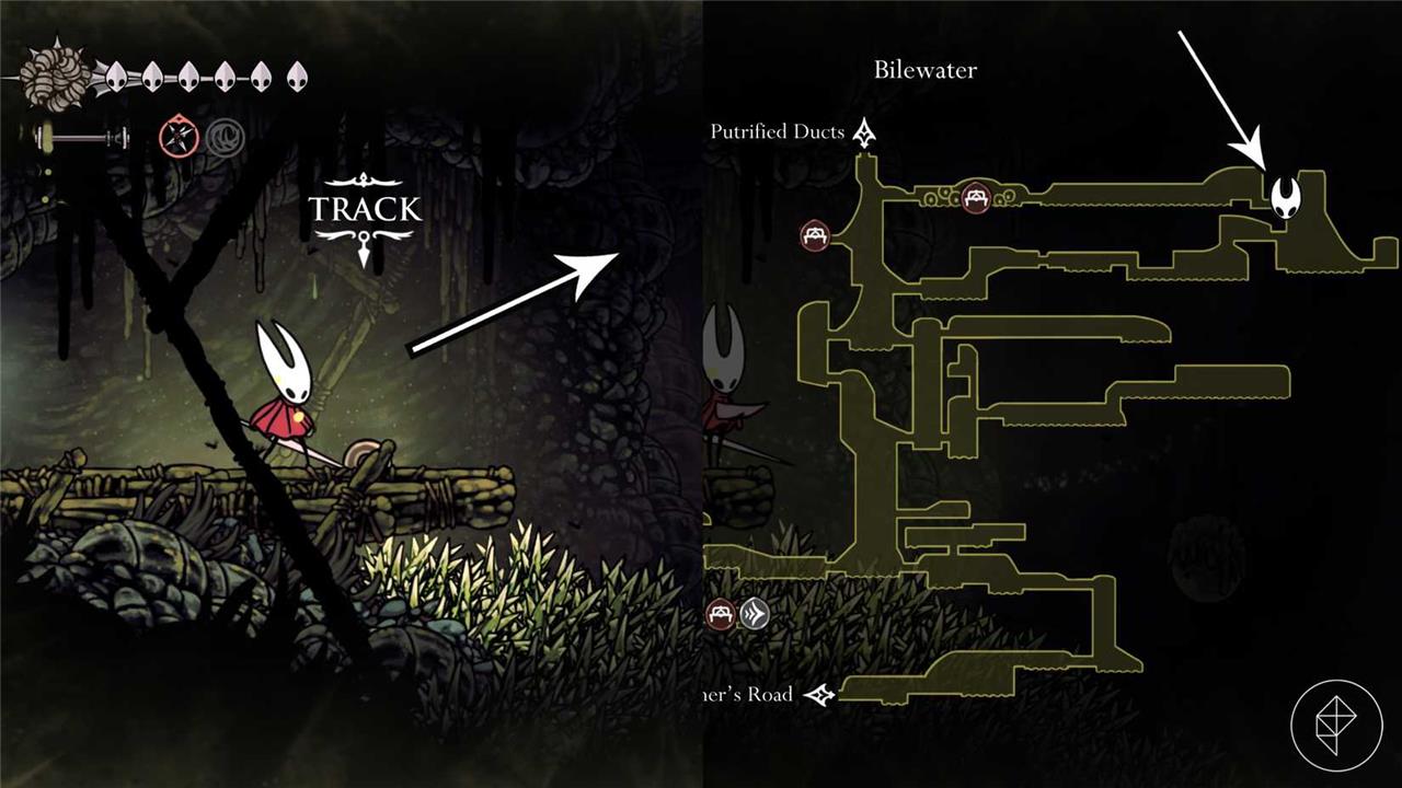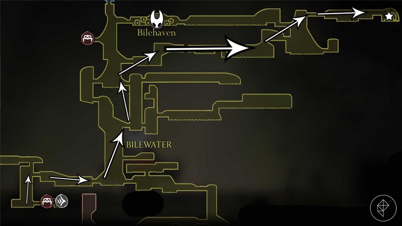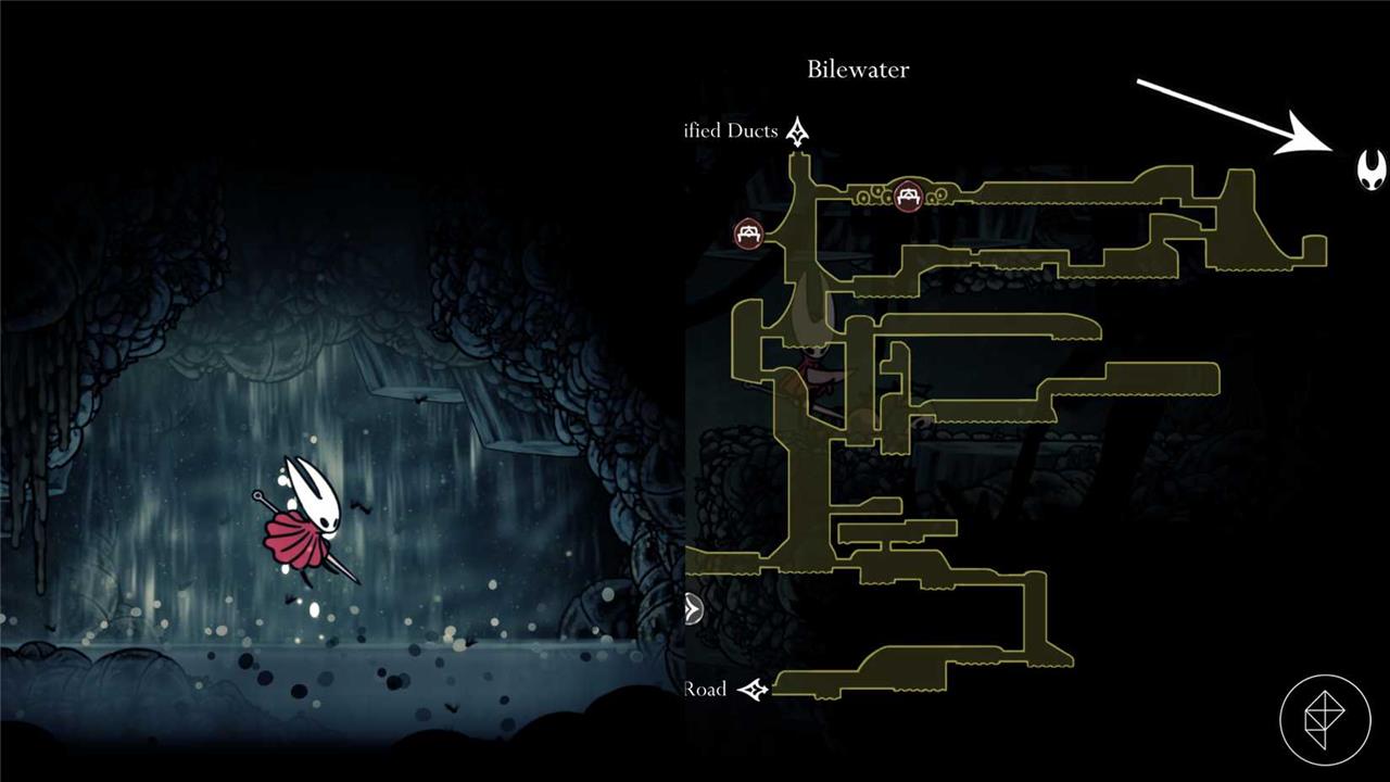 Starting from the Putrified Ducts Bellway Station, drop down the large vertical chamber to the left. At the bottom of this chamber, go left again (destroy the two breakable walls if you haven’t already). At the first opportunity, drop down into Bilewater.