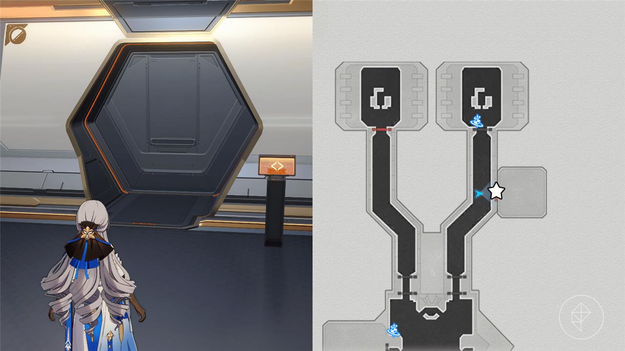 The triple authentication door sits in the northern section of Herta Space Station’s Base Zone, within a square room on the western side. Players spot it during early exploration after interacting with the panel that demands three certification cards. Once collected from Master Control Zone, Storage Zone, and further north in Base Zone, return here to combine them and gain entry to the reward chest.