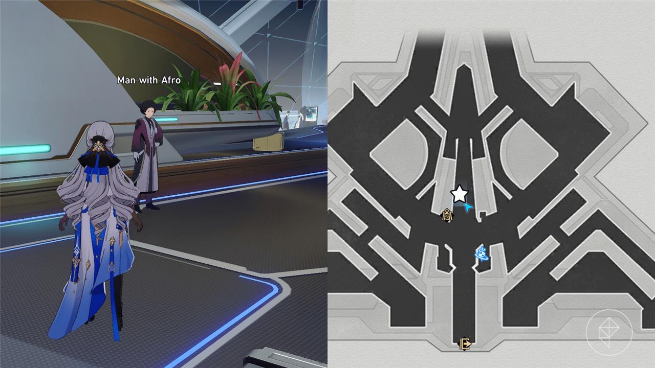 - Find the Man with Afro beside the internal purchase officer, where you use your Hertareum currency.