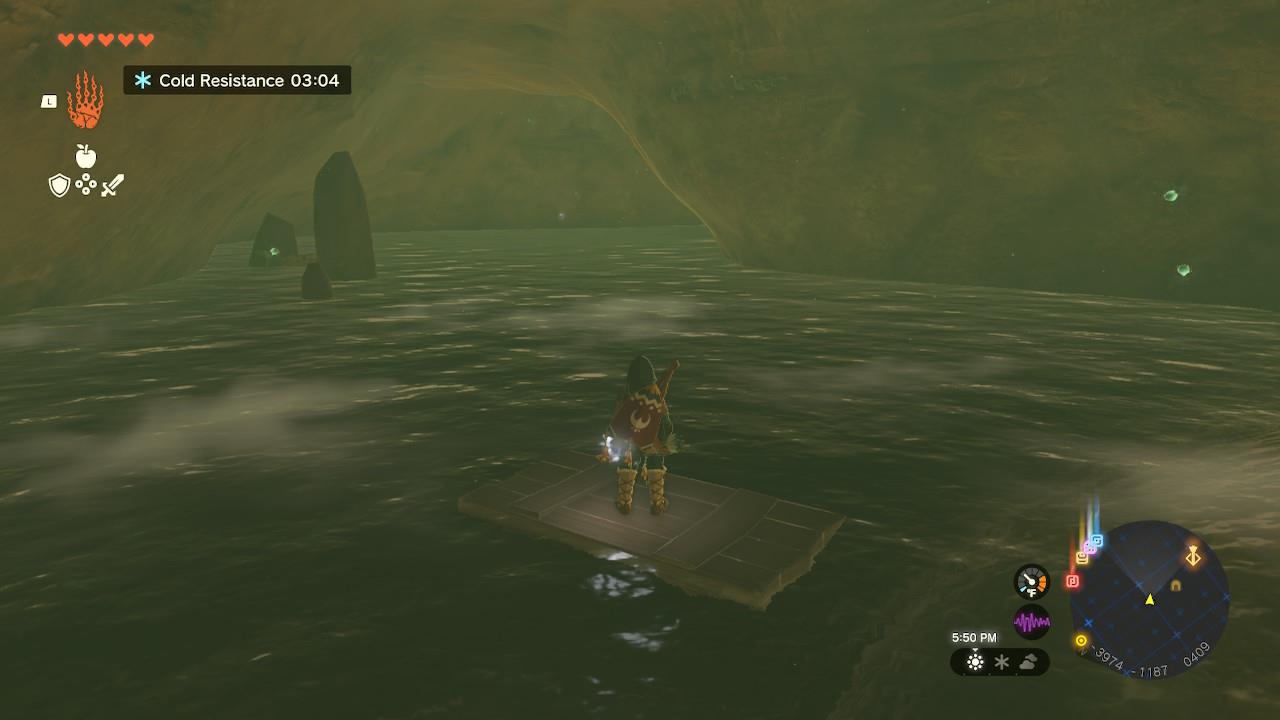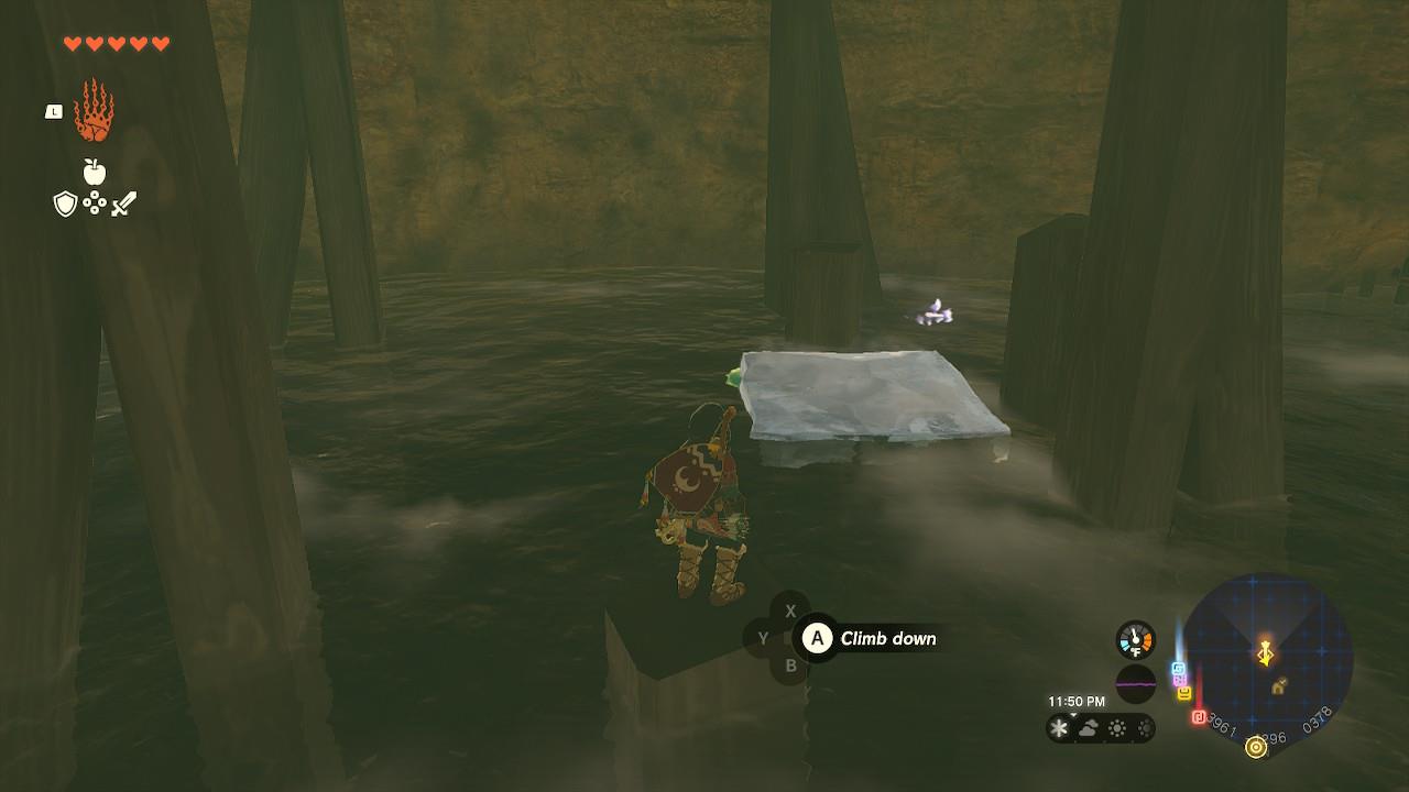 I grabbed one of the boards in the construction spot with Ultrahand and just placed it on the water, as the current will push it on its own. Aside from a Bubbulfrog, there aren’t other enemies to worry about.