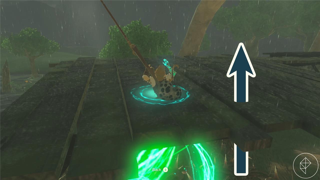 Ascend shines southwest of Hateno Village in the wetland ridges and Mount Floria foothills, where overhanging cliffs and scaffolds offer quick elevation gains amid slippery terrain and rain.โโ