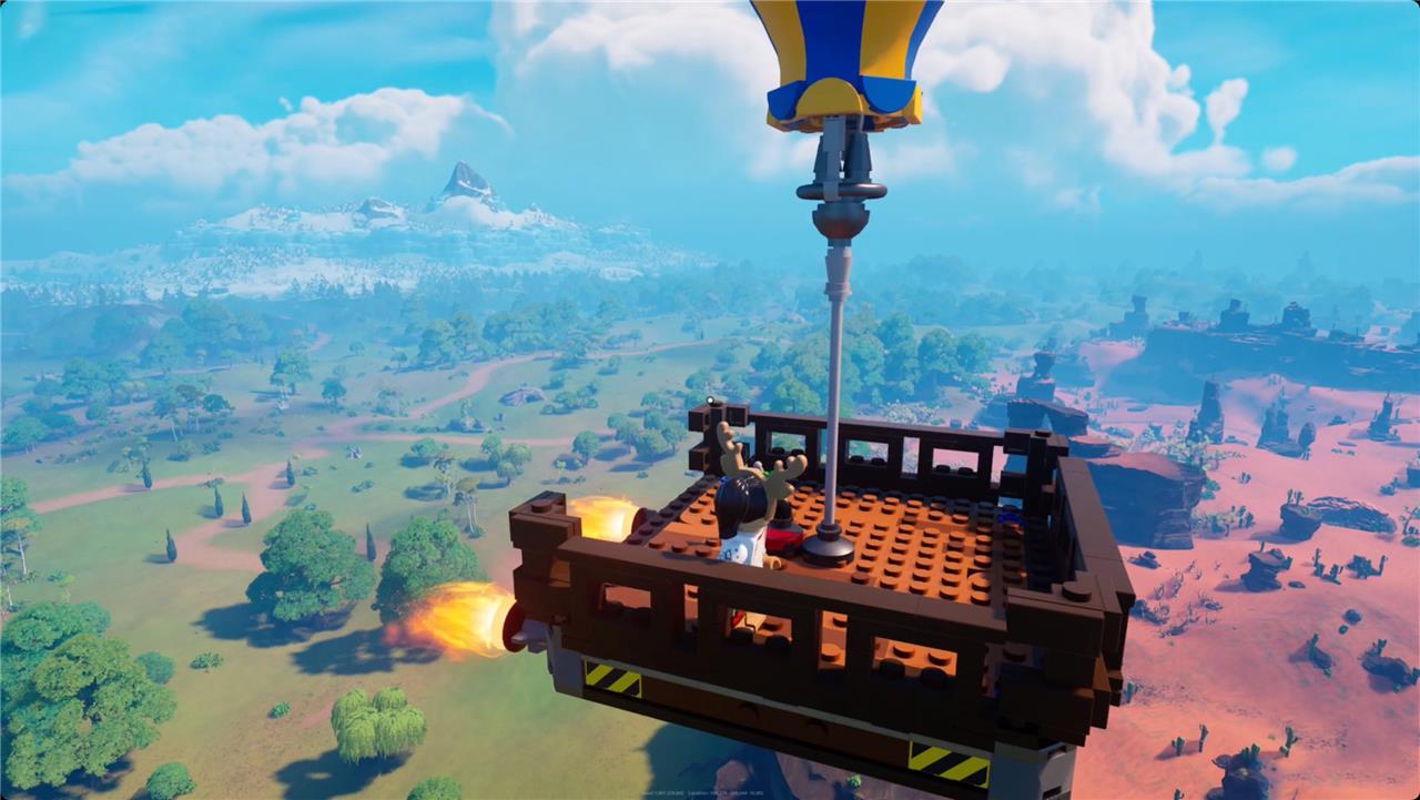 You can, if you want, throw on an activation switch (1 wood and 1 blast powder) and a small thruster (1 wooden rod, 1 blast powder, and 1 torch) or two. When you hit the switch, your balloon will rocket off in the direction the thruster is pointing. At the moment, there are no steering wheels in Lego Fortnite, so if you want to choose the direction you go, you’re going to have to get creative.