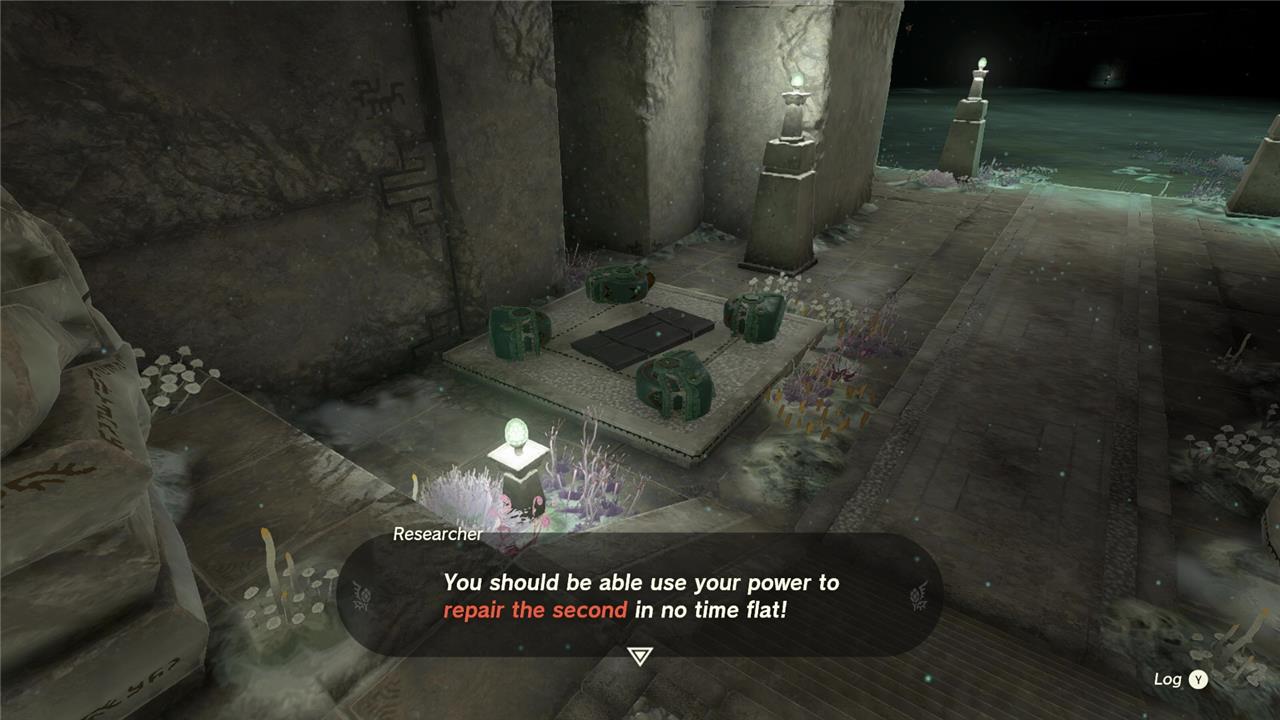 You’ll then be tasked with repairing two objects on two pedestals on either side of the stairs, a not-so-subtle tutorial on the advantages of using Autobuild.