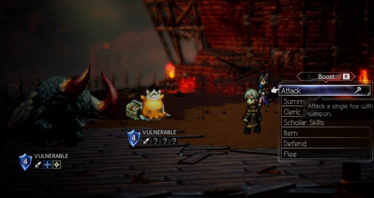 • Break shields first with multi-hits (e.g., Osvald’s random magic or Castti’s double elemental), then unload boosted damage.