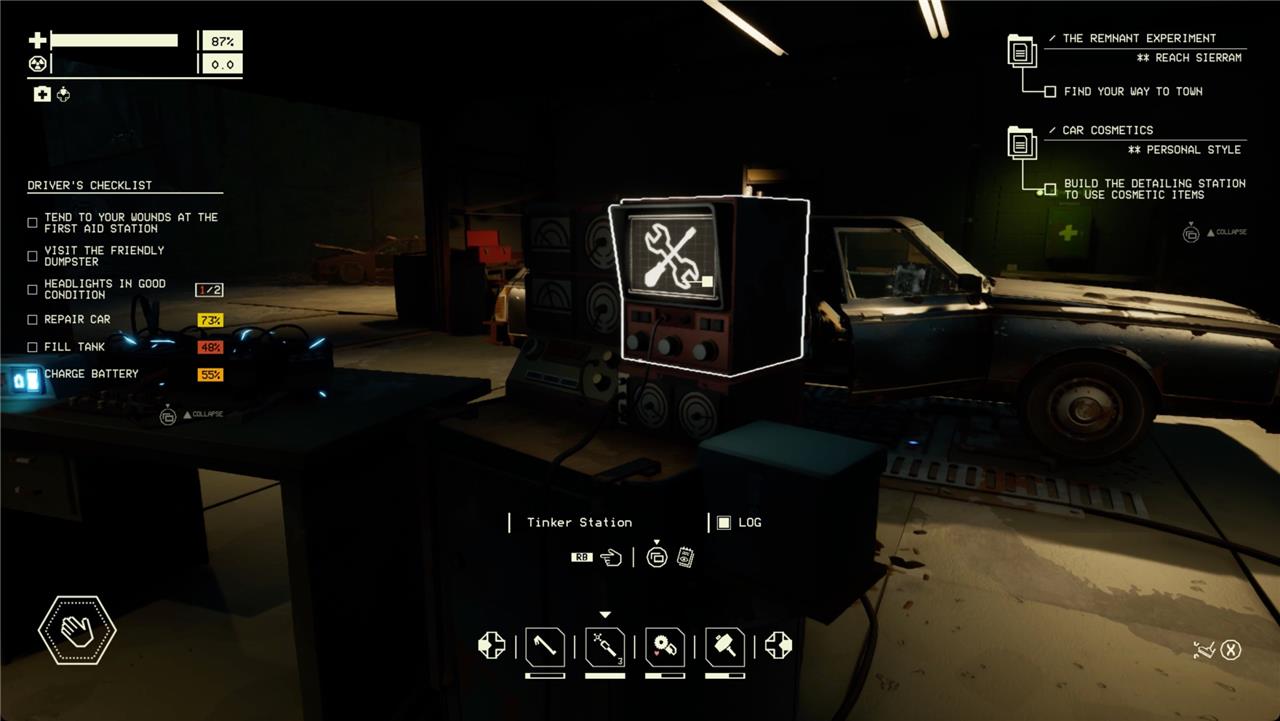 Very early on in Pacific Drive, you’ll get an objective to use the tinker station to diagnose your car’s quirks, but you won’t get any explanation about how that process works.