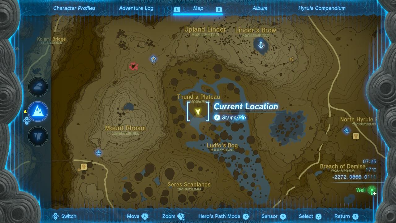 For the final piece of the Awakening Armor, head to the Thundra Plateau on Hyrule Ridge, in the northwest part of the map. The coordinates are (-2272, 0866, 0111).