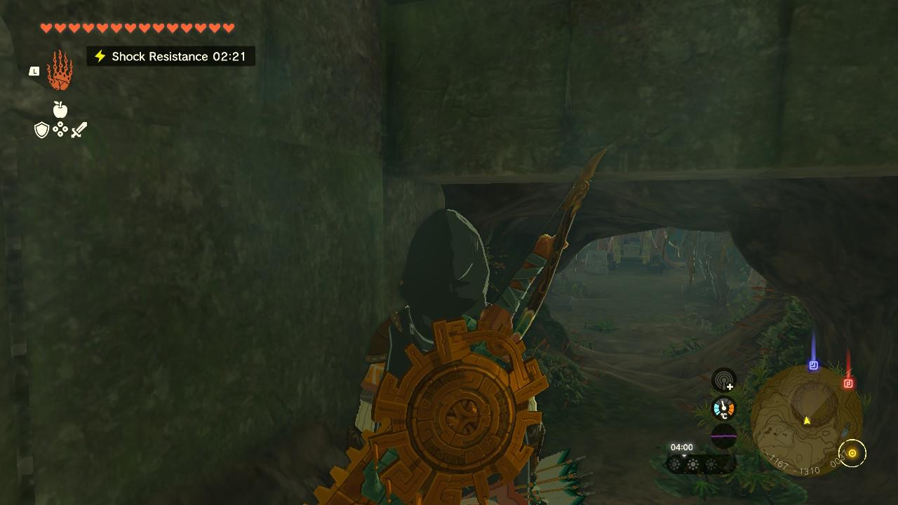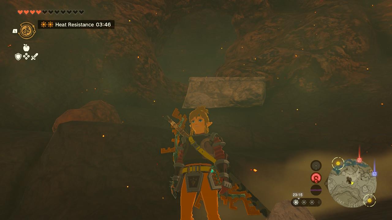 Inside here you’ll find a chest with an Ember Shirt, which raises Link’s attack in hot weather. After opening the chest, the wall on the left will open up. Go through it.