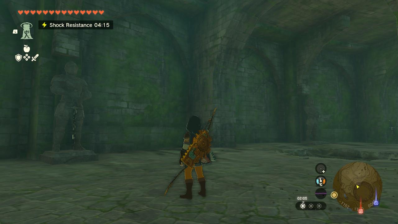 After you defeat the beast, you can complete the puzzle left by Misko. Head to the south of the coliseum where you will find two statues. The one on the left will be holding a Soldier’s claymore. Find another one to the right of the two statues, and use Ultrahand to bring it close to the unarmed statue. It’ll snap into place and a hole in the floor will open.