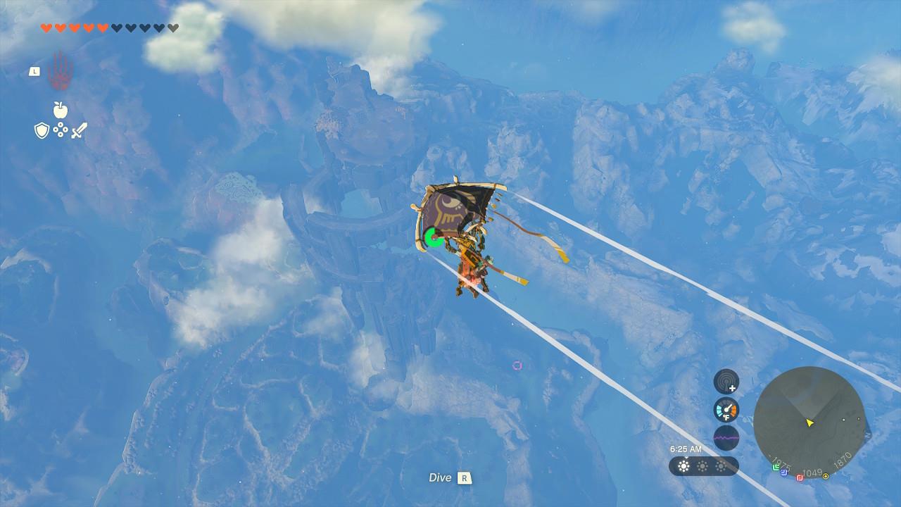 Once you’re on the island, you’ll find a Steward Construct. They’ll tell you about the dive ceremony. For the low price of one Zonai charge, you’ll be able to take on a timed challenge, asking you to skydive through green rings as fast as you can.