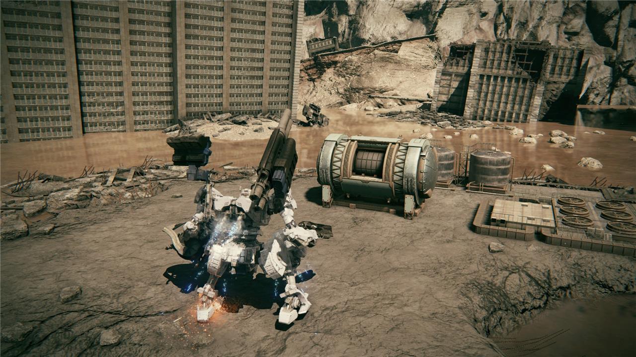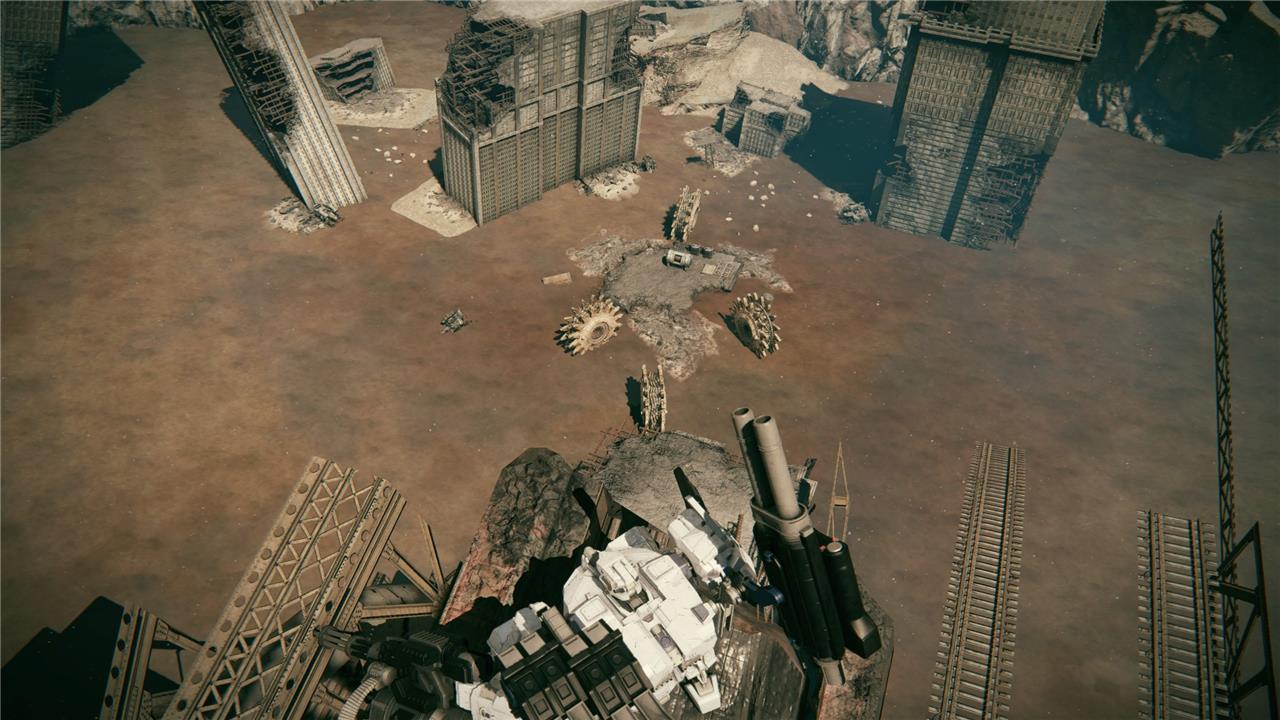 The alternative to fighting these four spinning saw blades (the Armored Core 6 equivalent of Dark Souls’ infamous Wheel Skeletons), is to simply drop down, grab your loot, and boost away.