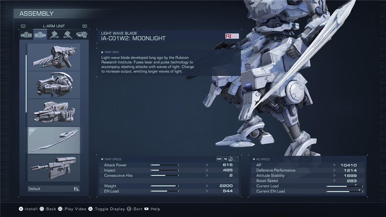Armored Core 6 Moonlight sword stats