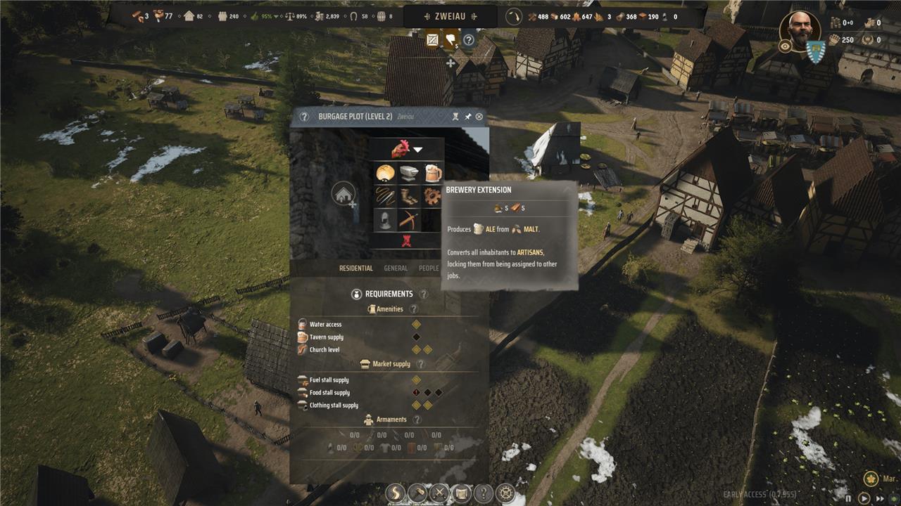 Convert Burgage Plots Strategically: Upgrade a Burgage Plot to Level 2 and convert it to a brewery only when you have a steady malt supply. This ensures your brewers are always productive and not idle due to shortages.