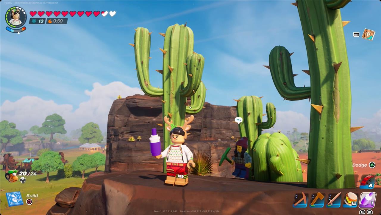 Survival in Lego Fortnite Odyssey not only means dealing with baddies, but also managing your own hunger and temperature. Since you need to explore biomes with temperature extremes, that means you have to learn how to deal with the heat and cold. You’ll have to explore the Dry Valley desert biome as you progress through Lego Fortnite. It’s where you’ll find flexwood, obsidian, copper, ruby, and brightcores.