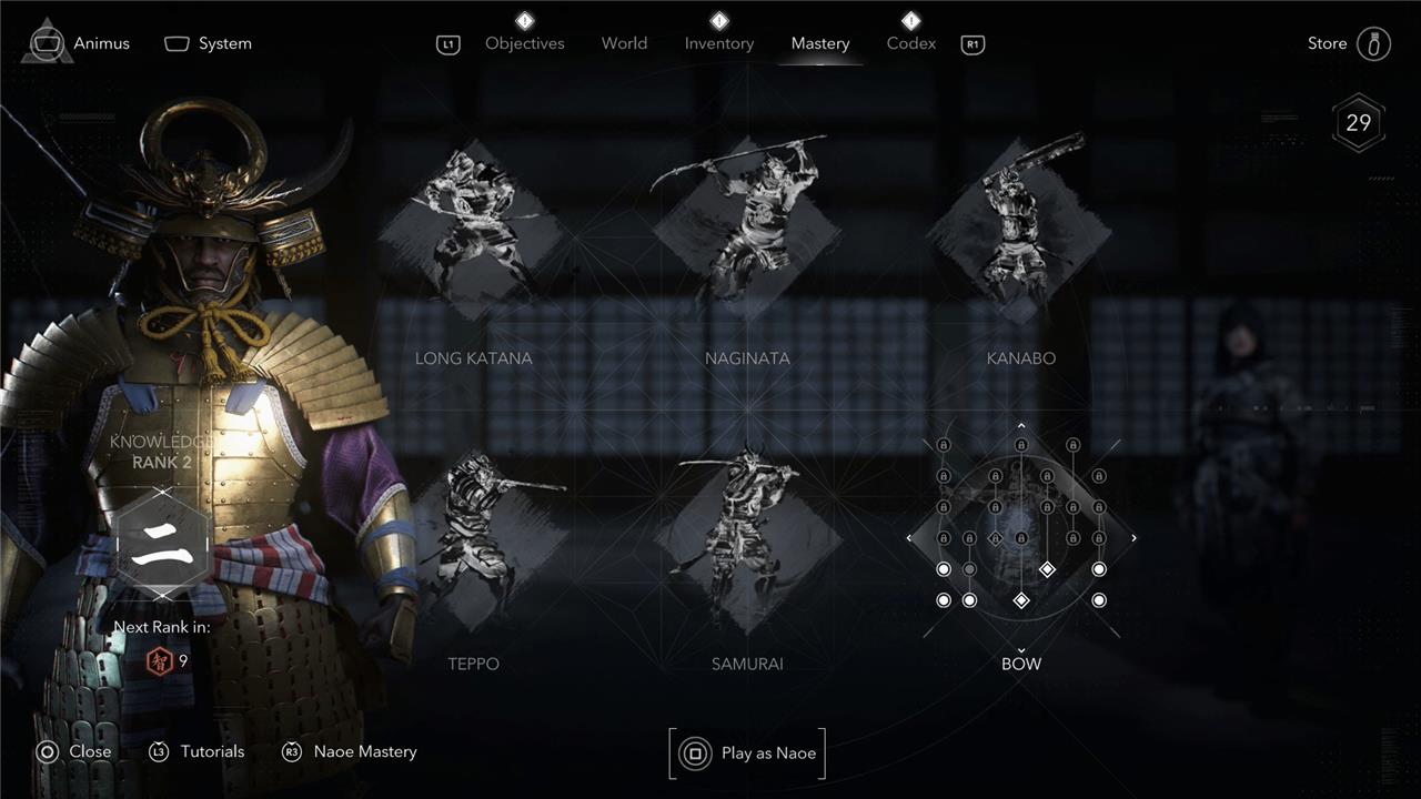 During the next few story beats (which, for those who have brushed up on their history, comprise the real-life Honnō-ji Incident), you’ll run into Yasuke for the first time since the prologue. After quite a few cutscenes and some short gameplay sections, you’ll get Yasuke as a playable character and be able to both change his gear and invest in his skill trees.