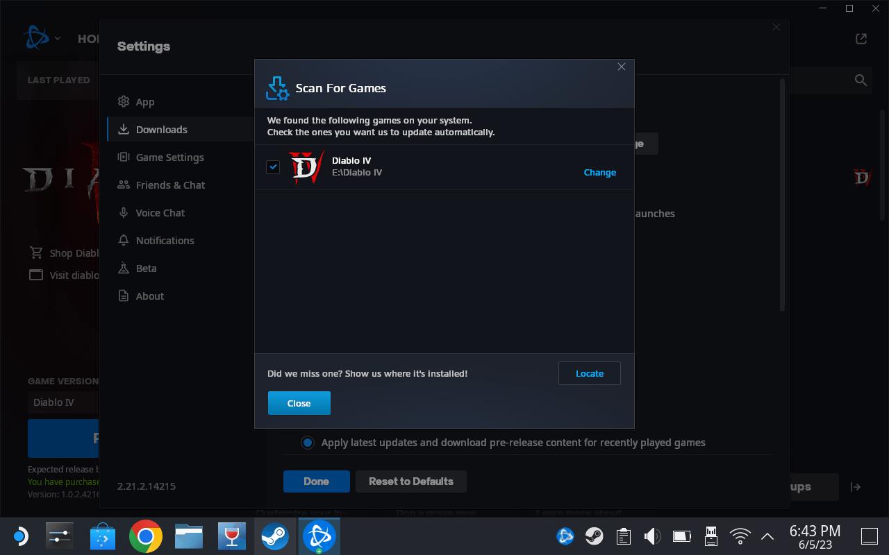 Launch the application in Steam, and you’ll be taken through the steps of installing and logging into Battle.net again. Don’t worry – you didn’t mess up. Once you finish that process, it should automatically detect your installation of Diablo 4.