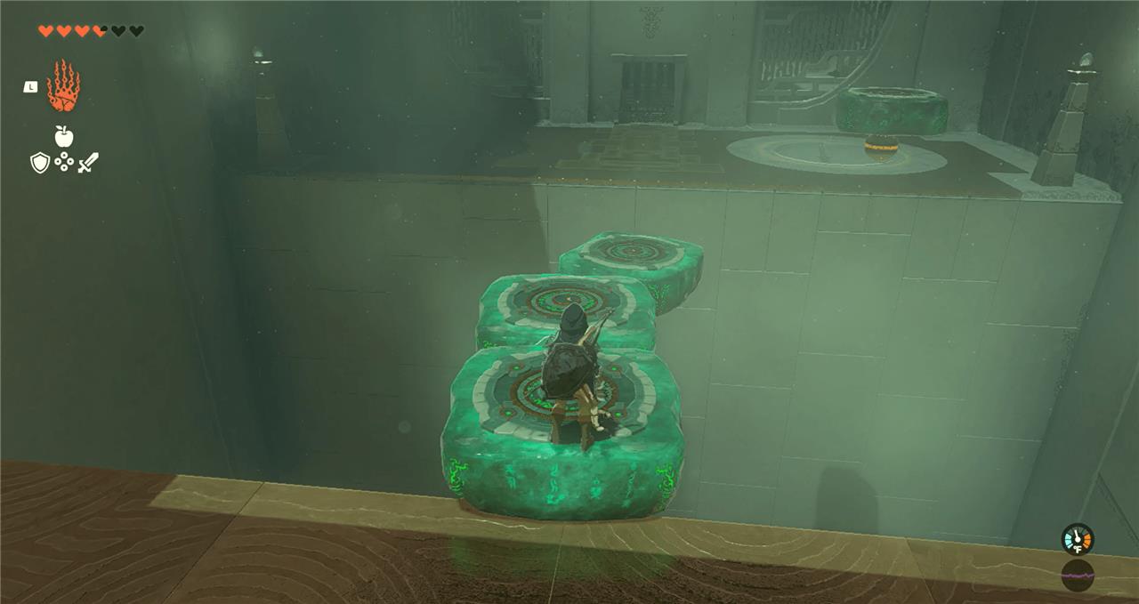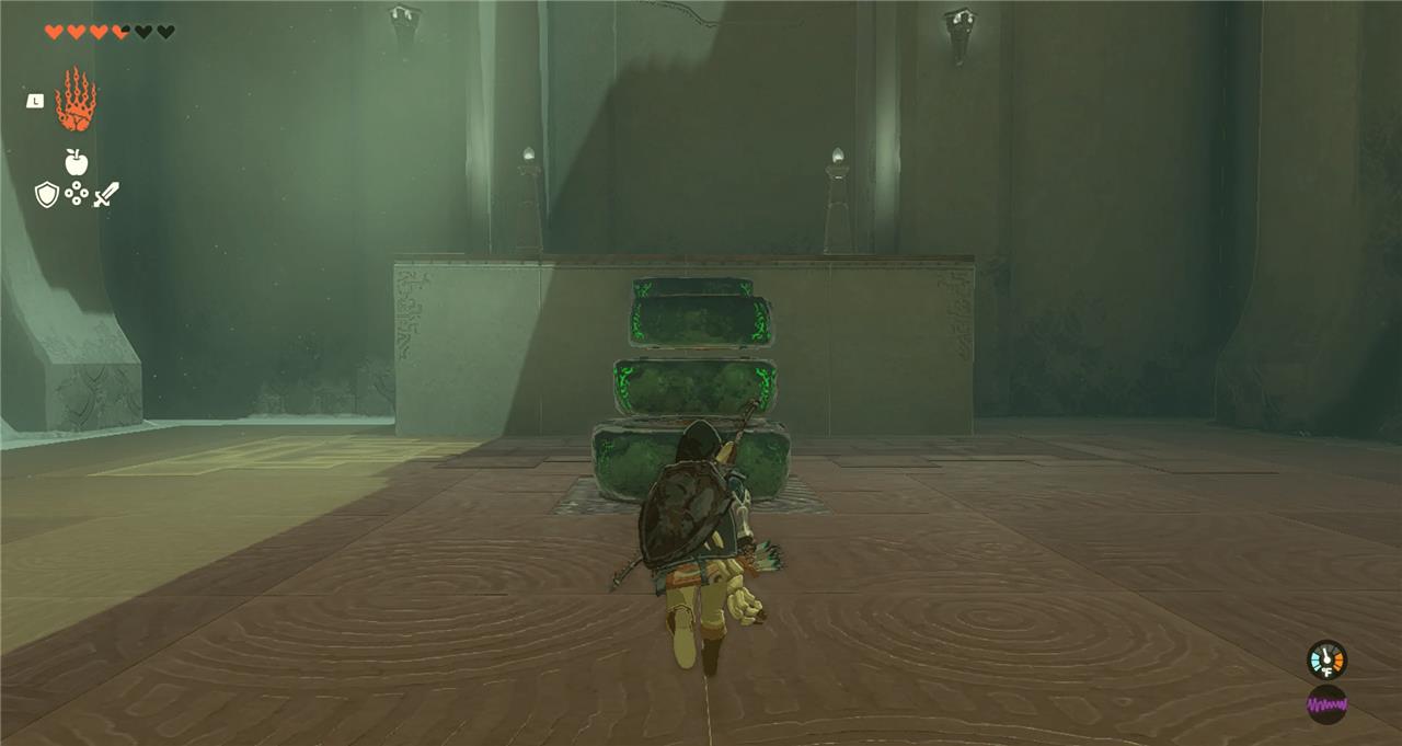 2. Use Ultrahand to assemble the flat, square stones into a stair shape leading onto the raised platform. Climb the stairs and head into the next chamber.