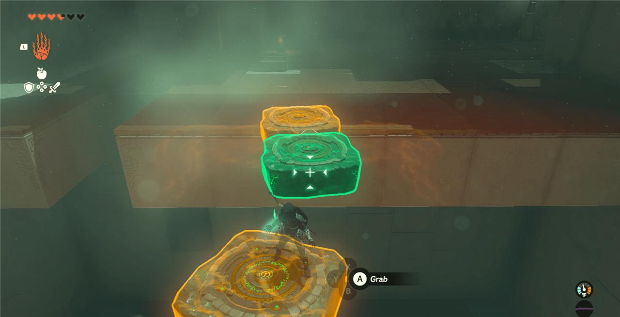 4. Hit the square stone to activate the Zonai charge. Place it into the gap. If you don’t activate the Zonai charge, it’ll drop into the chasm. (Another will pop up in its original spot, though.)