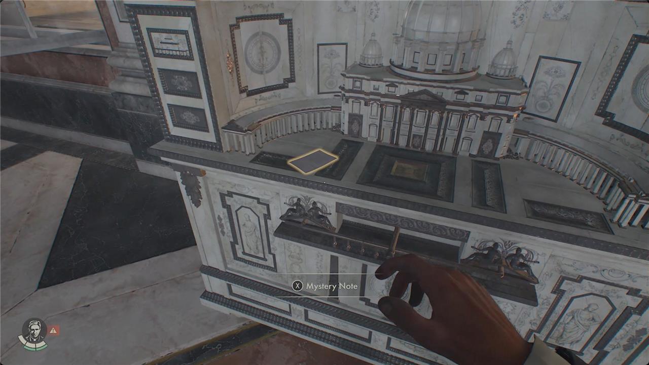 Place the chalice in the square on top of the puzzle box in front of the model. This opens the final secret panel and reveals the Vatican Relics Exploration Book. This map guide adds the location of a relic to your map.