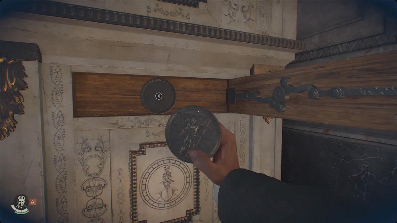 This opens a door on the left side. Inside, you’ll find a Relief Medallion. Pick it up and then interact with the lever again. Slide the lever all the way to the left for another clunk.