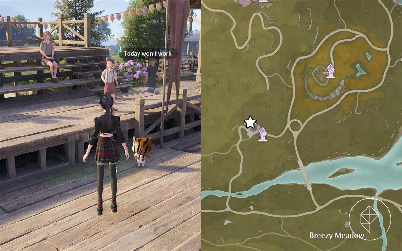 The “Kindled Inspiration: Deft Exuberance” quest in Infinity Nikki can be found by speaking to Peysi at the Meadow Activity Support Center in Breezy Meadow. Peysi is usually standing on the wooden platform near the rear of the building or on the bleachers behind the center, and the quest becomes available between 5:00 and 21:00 on a sunny day. To unlock this quest, you may need to have completed the “Kindled Inspiration: Natural Design” quest or simply approach Peysi at the location. The quest involves finding and crafting the Swift Leap shorts, which are necessary to complete the task by wearing them and showing them to Peysi. The sketch for the Swift Leap shorts is located in a treasure chest atop the columns at Memorial Mountain near Kilo the Cadenceborn, requiring some climbing to reach. After crafting the shorts with the required materials, you return to Peysi to finish the quest and earn rewards.