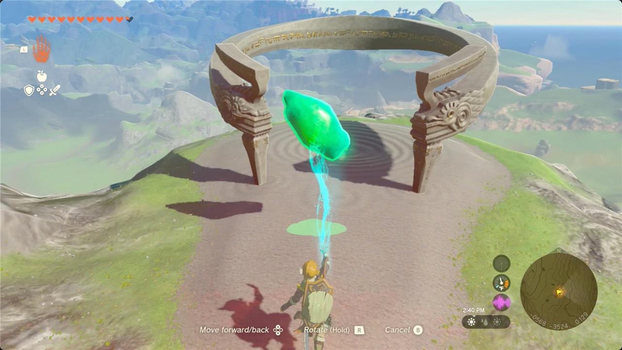 There are some Zonai sleds and steering sticks to the left of Baddek’s camp, but it’s not too far to just carry the crystal with Ultrahand. Be very careful setting it down because it really wants to roll downhill and away from you – we learned this the hard way.