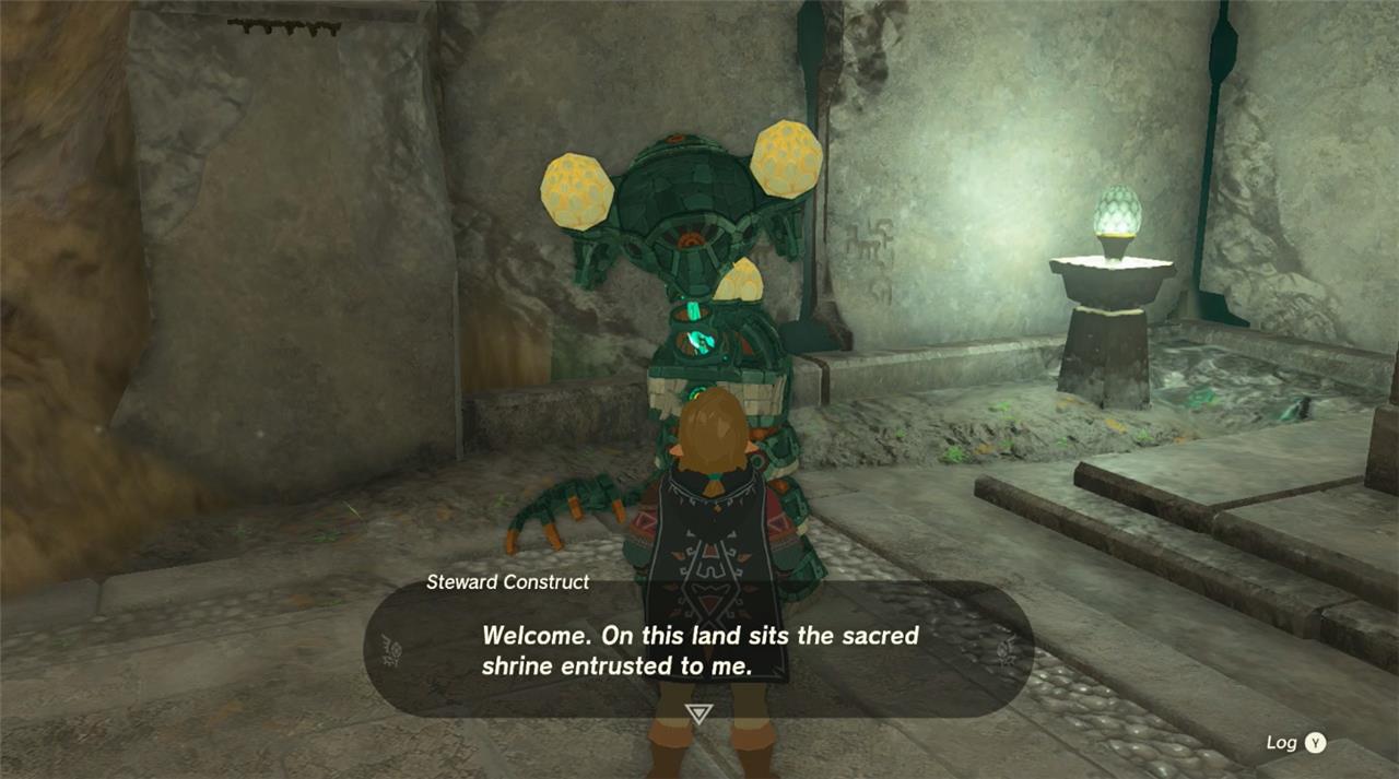 1. Locate the stone temple on the road alongside Squabble River and walk up the stairs. Find the Steward Construct to the left of the three diamond-holed stone slabs and speak to it to trigger the side quest.