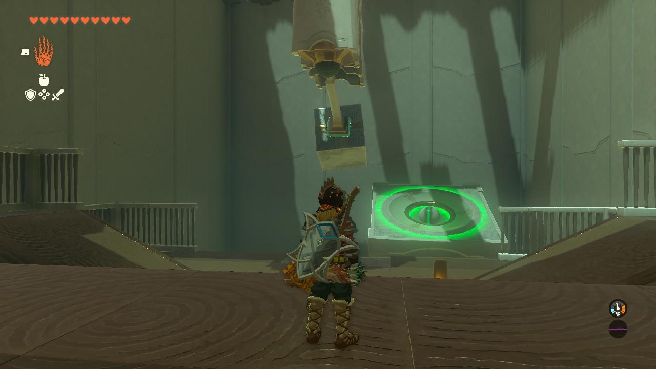 4. Once you’ve hit the target, head left. There’s another room with another block, hanging handle, ball, and Zonai switch. Attach the block to the handle.
