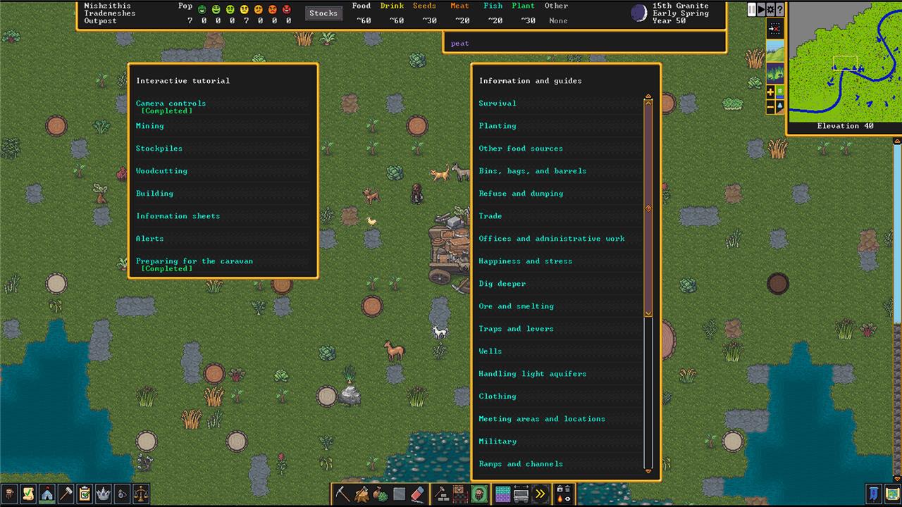 New players get an in-depth, interactive tutorial covering fortress basics like digging, building, and managing dwarves. It addresses the steep learning curve by walking through scenarios step-by-step, with options to replay or access anytime from the redesigned help menu, making onboarding far smoother than manual wiki dives.โ