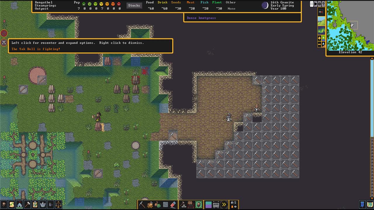 If you’re a Dwarf Fortress veteran, take your time to learn the new shortcuts – there are helpful tooltips that pop up when you hover the mouse over any given icon – instead of trying to forge ahead with the commands you (think you) know.