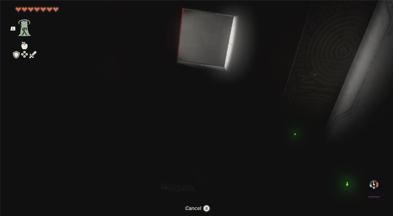 5. Turn around again and head left, then left again. You’ll see a panel on the wall toward the right. Use Ultrahand to remove the panel and grab the chest. This one has amber. Continue past the wall (and the spiked wall on the right) and turn left. Turn left again and you’re back in the main chamber.