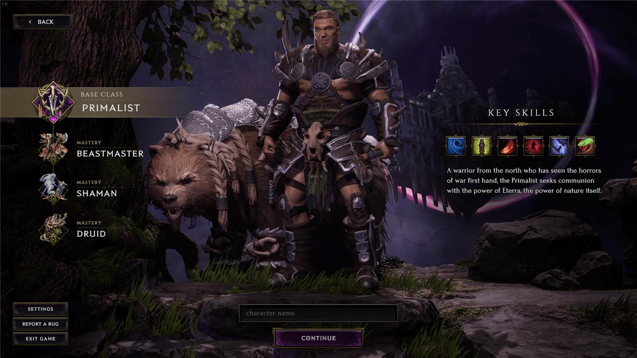 The Primalist is an interesting mix between a brutal, up-close fighter and things you might associate with a more natural spellcaster or ranged character in another game. The playstyle here is a mix between managing summons like pets or totems and melee combat.