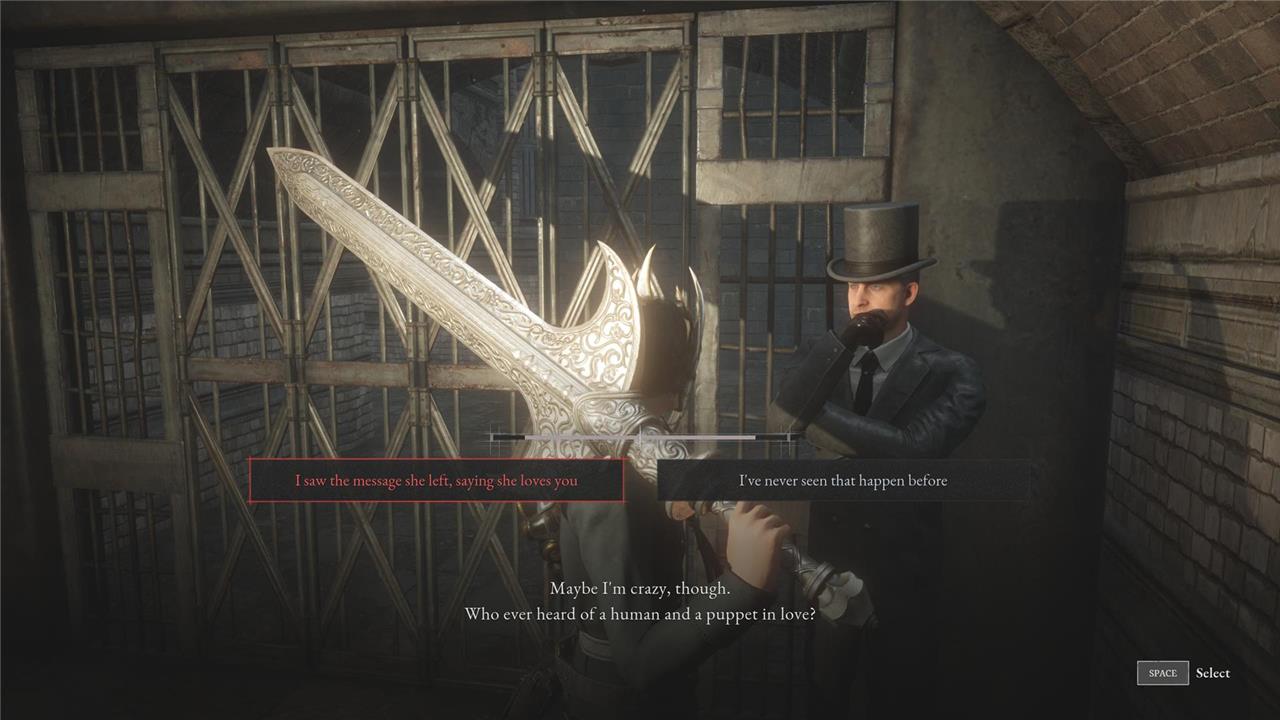 - Location: Hotel Krat and Ruined Krat Station – For this, you need to meet Belle in Grand Exhibition (she’s in a small nook on the second floor off to the side of the metal railings). She’ll then go to Hotel Krat. Later, once the secret passageway to the Relic of Trismegistus has been unlocked, Belle will ask for your help. You’ll have to find her friend, who’s inside a green train carriage in Krat Central Station. After meeting her friend, return to her for this particular Lies of P Lie or Truth decision.