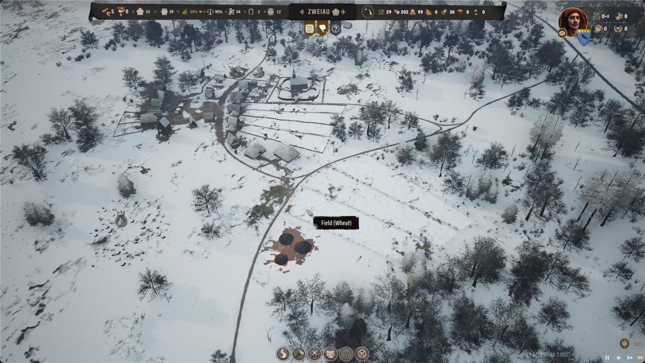 A year in Manor Lords is divided into the typical four seasons – spring (March through May), summer (June through August), autumn (September through November), and winter (December through February). Things happen in the world depending on the season – for example: you can’t gather berries during winter, crops grow during spring and summer and then are harvested (and replanted) in autumn, and your sheep farms don’t produce wool in the winter (the sheep would get cold). The winter’s temperature also means that all of your burgage plots and families consume twice as much fuel to keep warm.