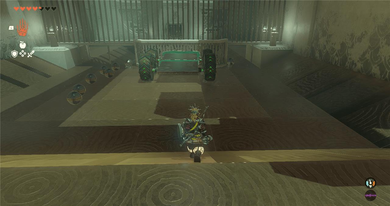 1. After entering the shrine, head straight forward until you reach the gap. Stand on the edge and peer down – you’ll see there’s a panel on the floor you can grab with Ultrahand. Pull the first one up and the rest will come with it.