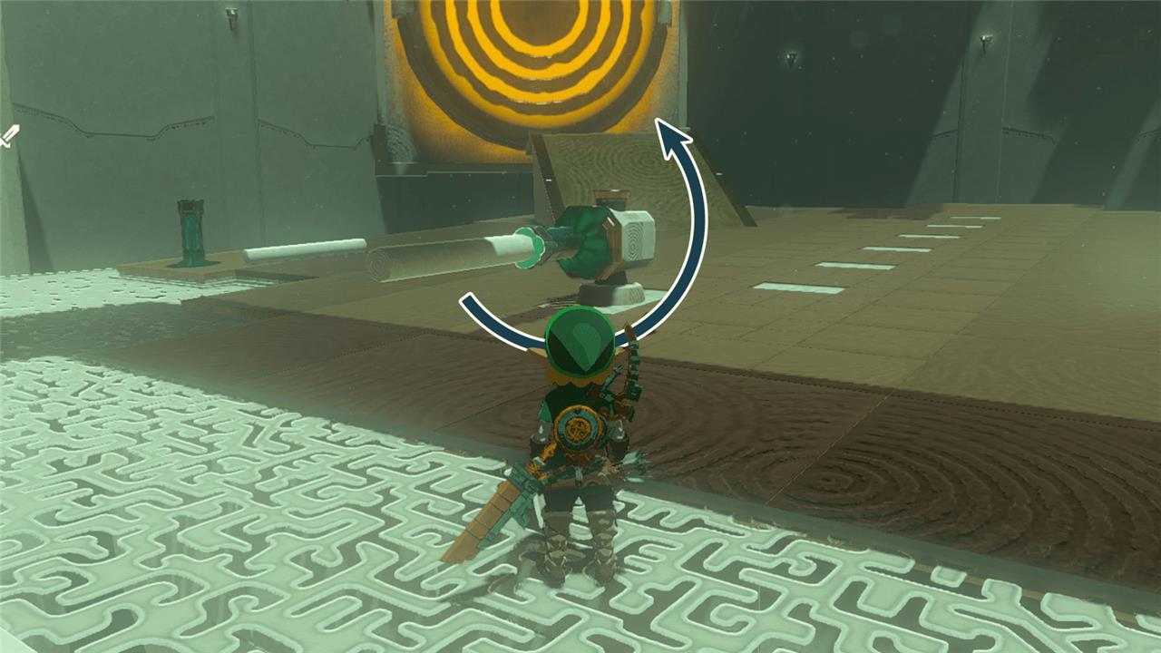 9. Practice hitting the crystal and adjust your timing until the ball hits the target – which will reveal a target on the right side of the room and open the shrine’s exit on your left.