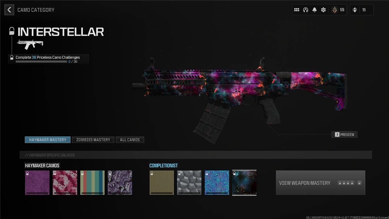 To unlock the Interstellar and Borealis mastery camos quickly in Modern Warfare 3, focus on efficiently completing camo challenges on a strategic selection of weapons rather than trying to do all at once. For Interstellar, you need to fully max out 36 weapons by completing their Priceless camo challenges, which involves finishing all base and mastery camo challenges on those weapons; Borealis requires completing 37 Serpentinite camo challenges, typically in Zombies mode.