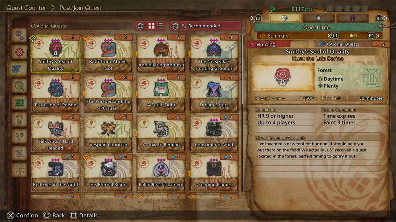 - High Rank missions will also be available, however unlike previous games, these aren’t in their own section. Instead, to simplify the UI, Wilds places these all in a single, contiguous list. To make things easy, High Rank missions (4 stars and above) are color-coded. As you can see, Low Rank missions have a blue star, while High Rank missions have an orange star: