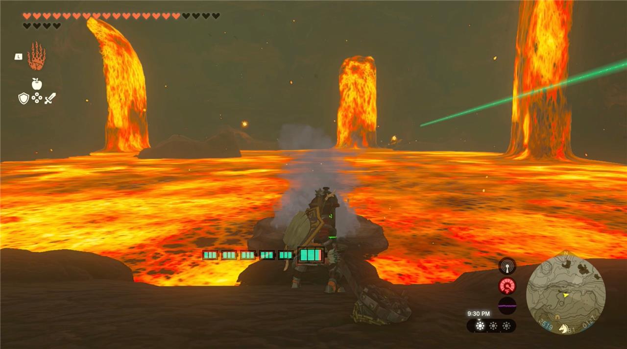 6. Next to the chest you’ll find a Zonai hydrant. Pick up the device and use Ultrahand to position it next to the lava lake. Activate using a weapon, and spray water into the lava to create a rock platform.