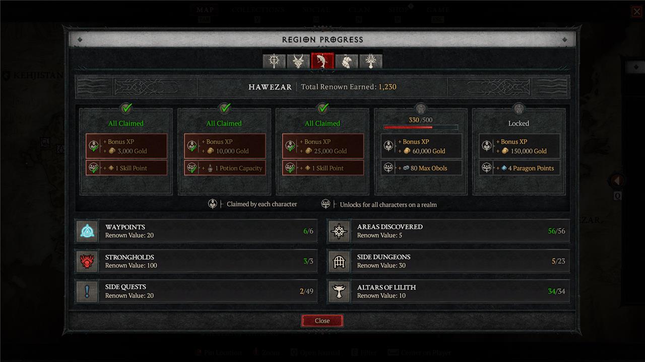 You can raise your Murmuring Obol capacity by progressing through Diablo 4’s Renown system. Completing zone activities such as side quests, dungeons, and strongholds rewards Renown points, and reaching specific Renown tiers in each region grants permanent increases to your Obol storage. Earning these rewards on one character shares the expanded capacity across all characters in your account, making exploration and completing regional objectives a practical way to grow your Obol limit.