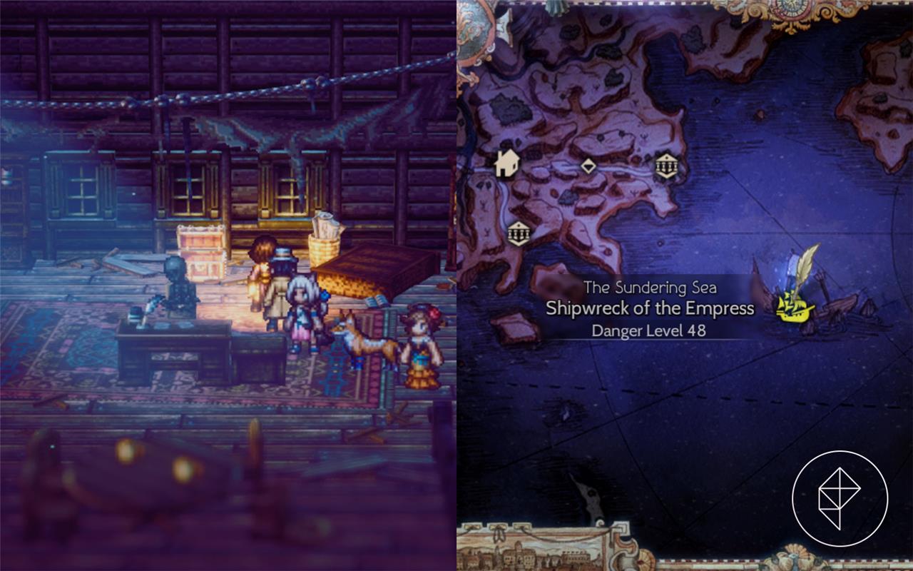 From Nameless Village, leave through the south exit and use the canoe to reach the Sinking Ruins (optional dungeon).