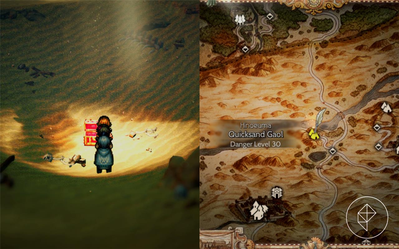 The Rusty Axe, which becomes Lionheart’s Axe upon restoration, lies in a chest inside Quicksand Gaol in the Western Sai Sands. Players must traverse the dungeon and defeat the boss Lord of the Sands, weak to sword, axe, ice, and holy attacks, to claim it. The area suits parties around level 40.