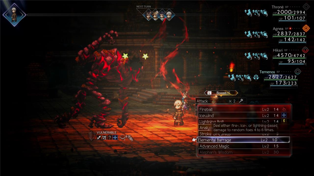 Octopath Traveler 2 throws multiple foes at you in every skirmish. Spreading attacks across the pack prolongs fights and wastes turns. Pick a single target and hammer it with your strongest moves until it drops. This breaks the enemy lineup faster, letting you mop up survivors with less resistance. Boosters amplify the damage to speed things up even more.