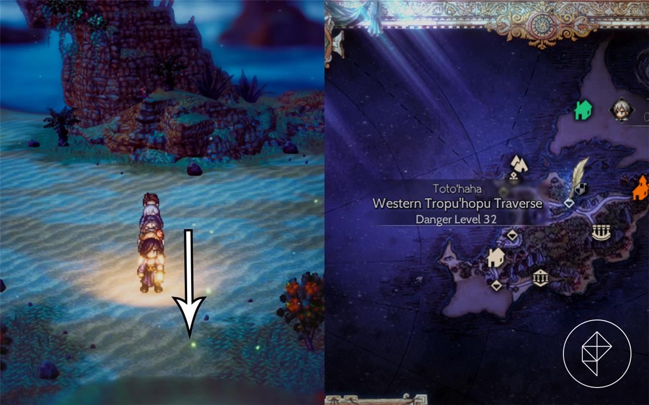 The Altar of the Huntress lies in Western Tropu’hopu Traverse, near Ochette’s Hunter Guild and the town of Tropu’hopu. Head east through the area until bushes with red flowers appear just before the town entrance, then pass between them into a cave. Enemies nearby reach level 18, and visiting with Ochette active unlocks her EX Skill Indomitable Beast.