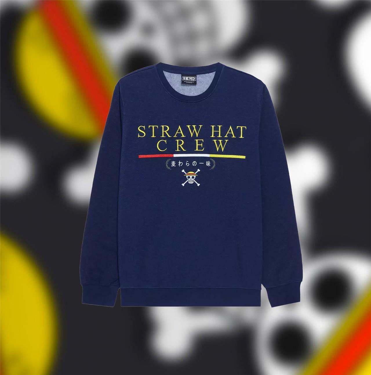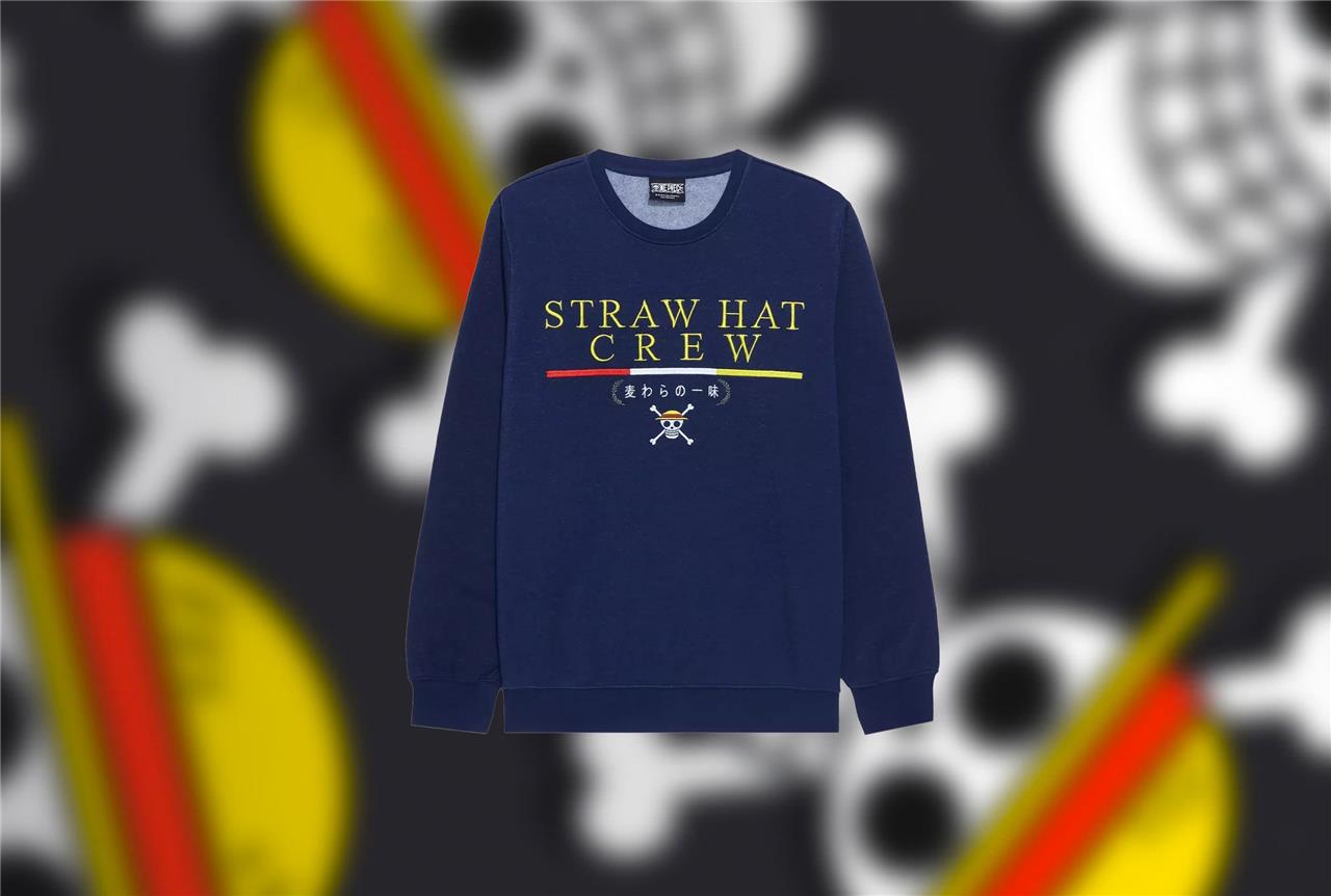 Demonstrate your pirate allegiance with this Straw Hat sweatshirt, which features the crew’s name in English as well as Japanese.